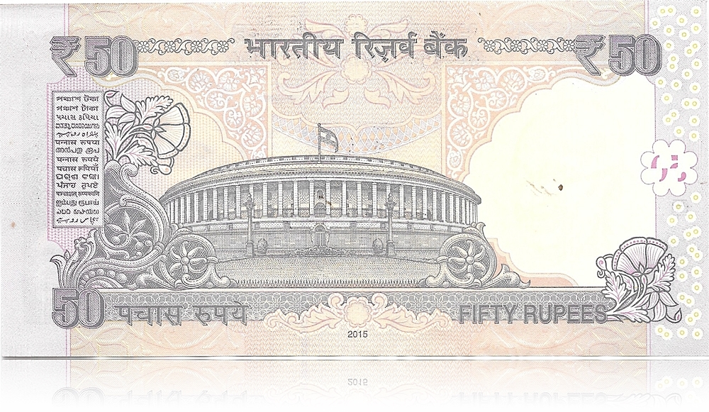 2015 Old 50 Rupee Note Plain Inset Sign by Raghuram G Rajan ending with F– 5GC 345222 (R)
