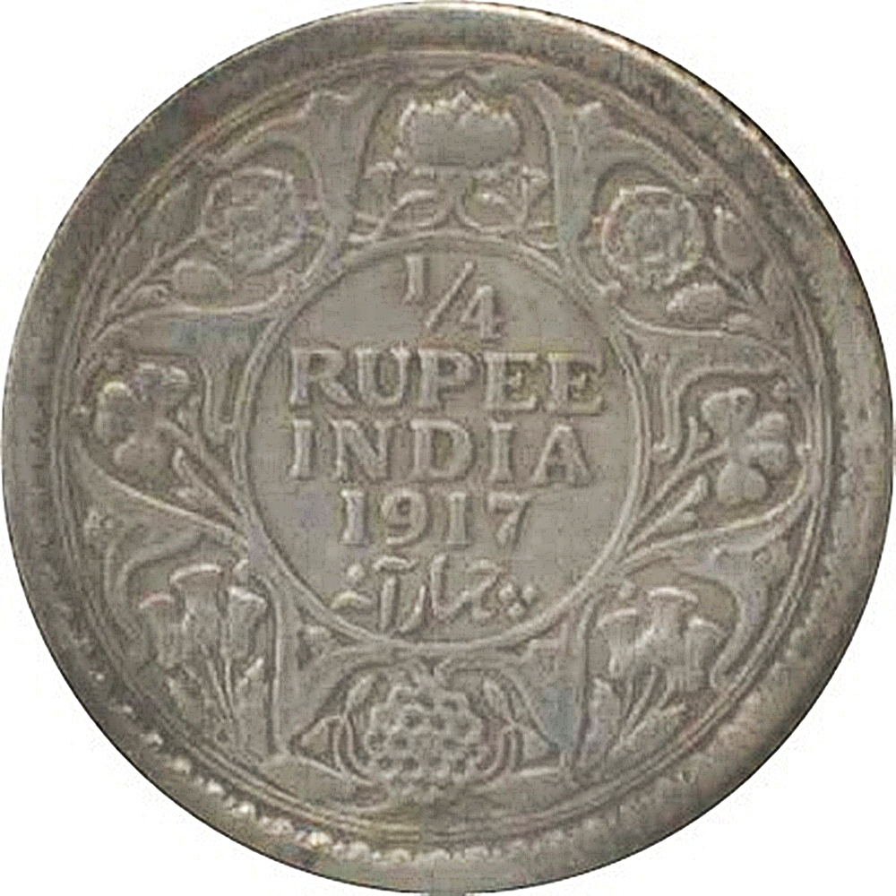1917 1/4 Quarter Rupee George V King Emperor – Calcutta Mint – RARE
