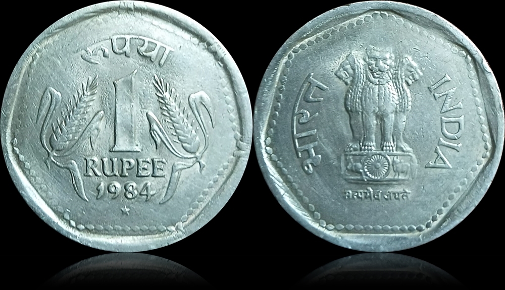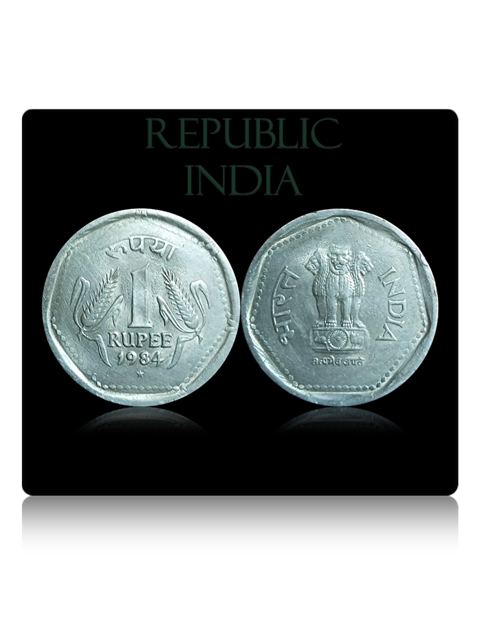 1984 1 Rupee Republic India Coin Hyderbad Mint