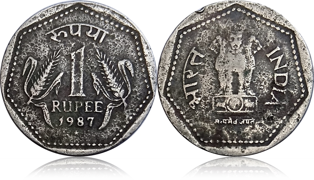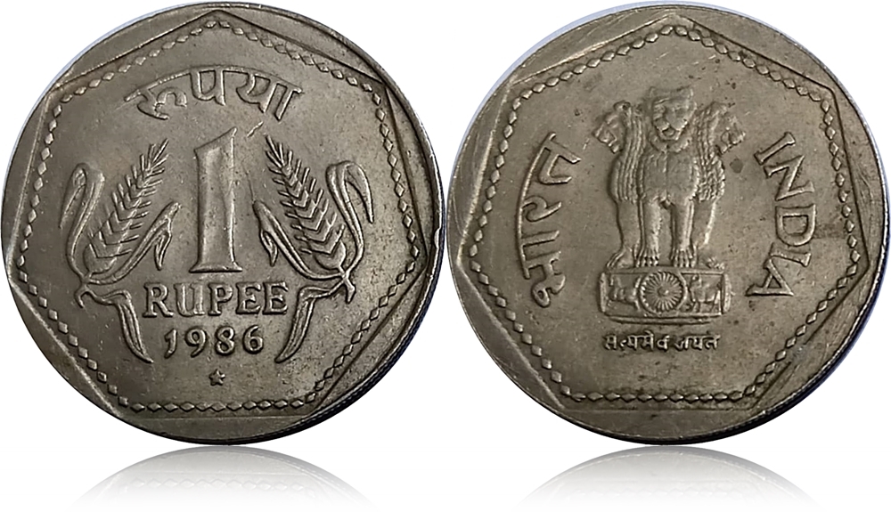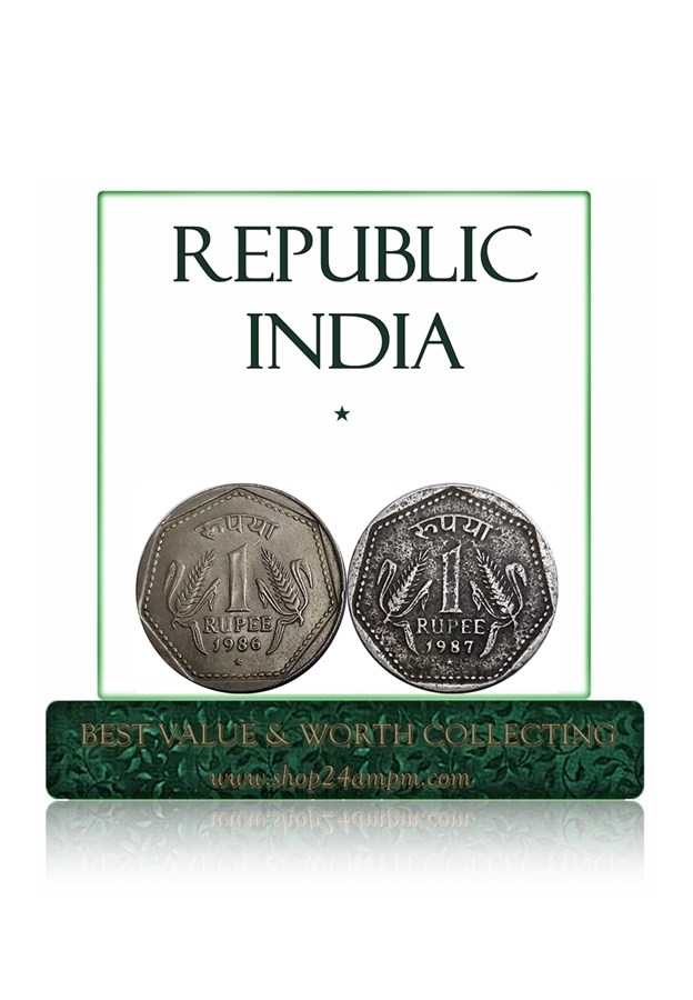1986 1987 1 Rupee Republic India Hydrebad Coin